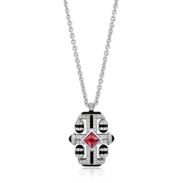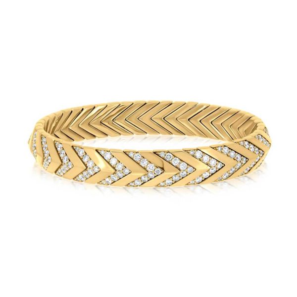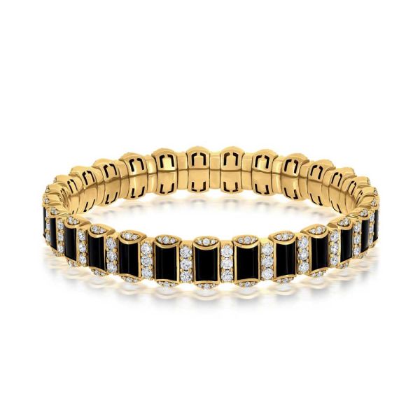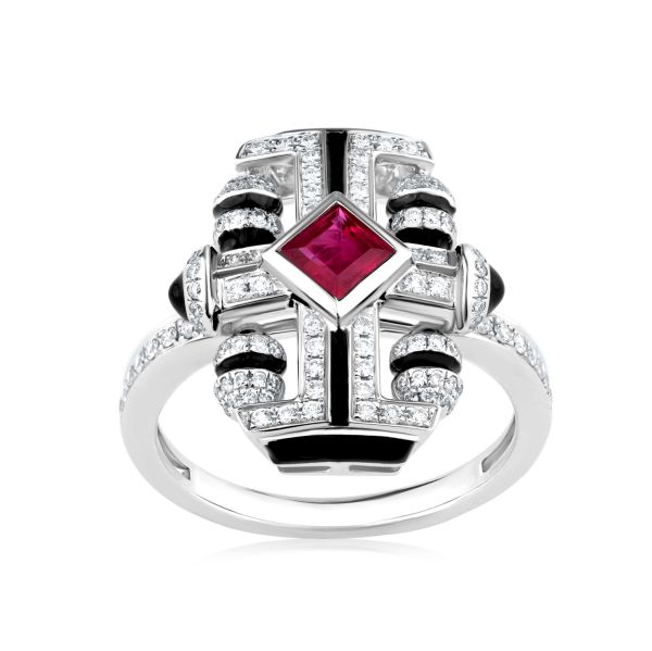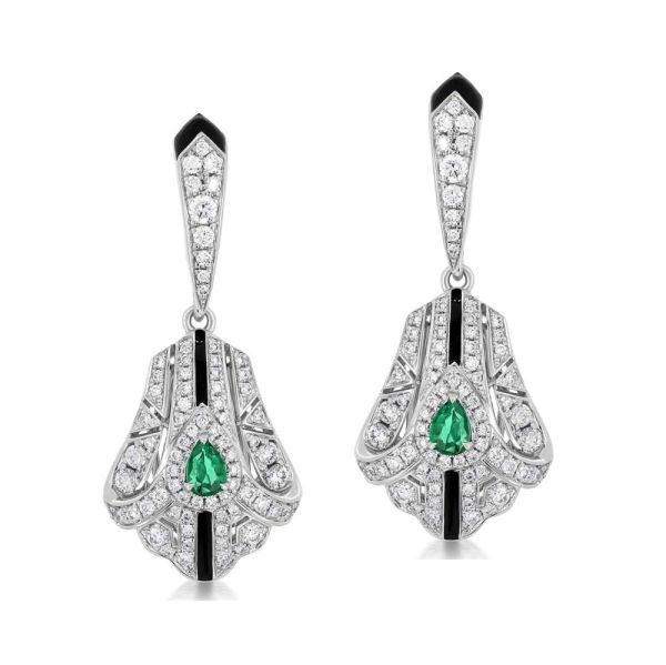 Architectural lines, rhythmic repetition, and gemstone contrast revive Art Deco with contemporary luxury refinement.
