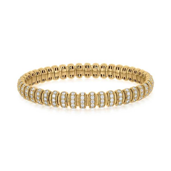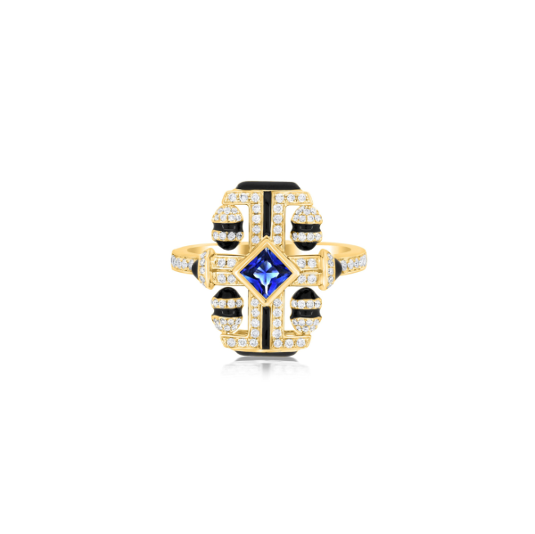 Architectural lines, rhythmic repetition, and gemstone contrast revive Art Deco with contemporary luxury refinement.