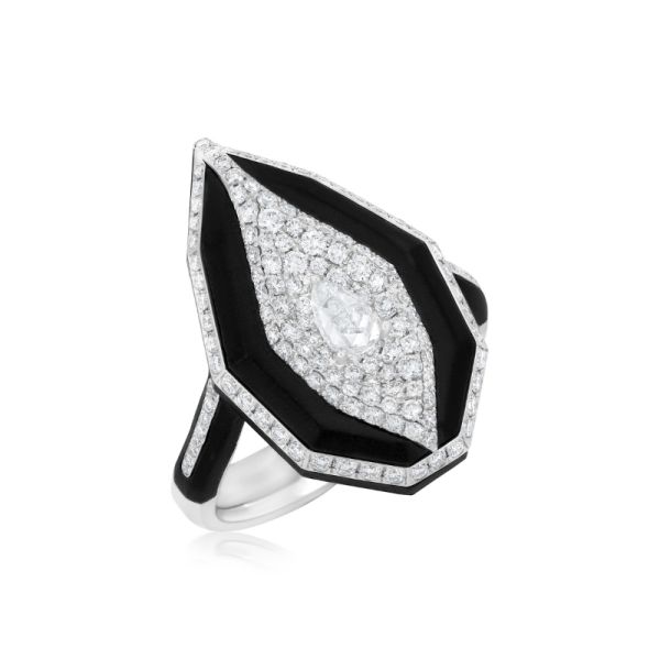 Inspired by focus, presence, and the interplay of light and shadow, the Noir Collection emphasizes architectural form and graphic silhouettes. Featuring elongated marquise forms and controlled symmetry, this collection seamlessly bridges the gap between statement dressing and everyday refinement, offering bold yet highly wearable high jewelry